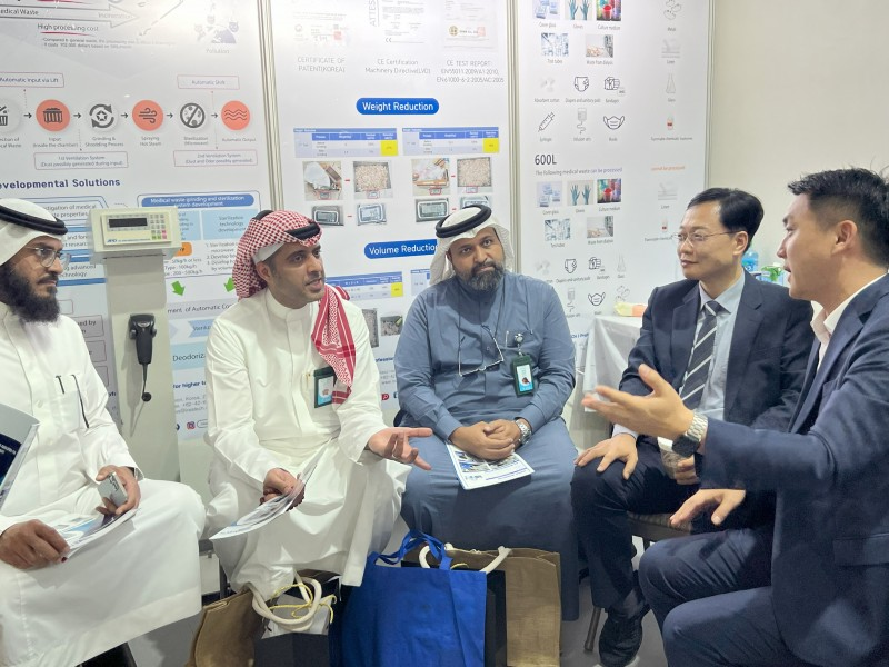 코로나 19 이후 기하급수적으로 늘어난 의료폐기물의 양과 그 처리 방법에 대해 고민하는 많은 의사, 간호사, 병원 및 정부 관계자 분들과 의견을 나누고, 저희 의료폐기물 자가처리장치 (Medical Waste Management Solution)를 소개하였습니다.